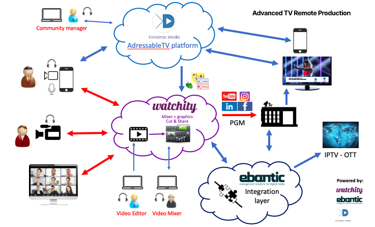NOTICIAS Watchity, Konodrac y Ebantic se unen para lanzar una solución de producción audiovisual en directo 100% Cloud Las tres