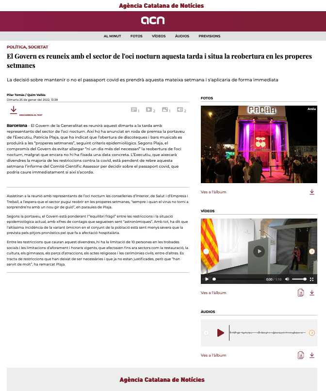 NOTICIAS La Agència Catalana de Notícies (ACN) lanza su nueva Plataforma Digital de la mano de Ebantic, Watchity y Aureacolor